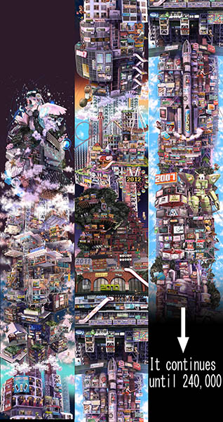 - In order to incorporate expression by a thing like oil painting to recoat, and the depth of coating, with the digital technique which can do a recoating to principle top infinity, a maximum of 4000 layers were piled up and the infinite recoating like oil painting was expressed.